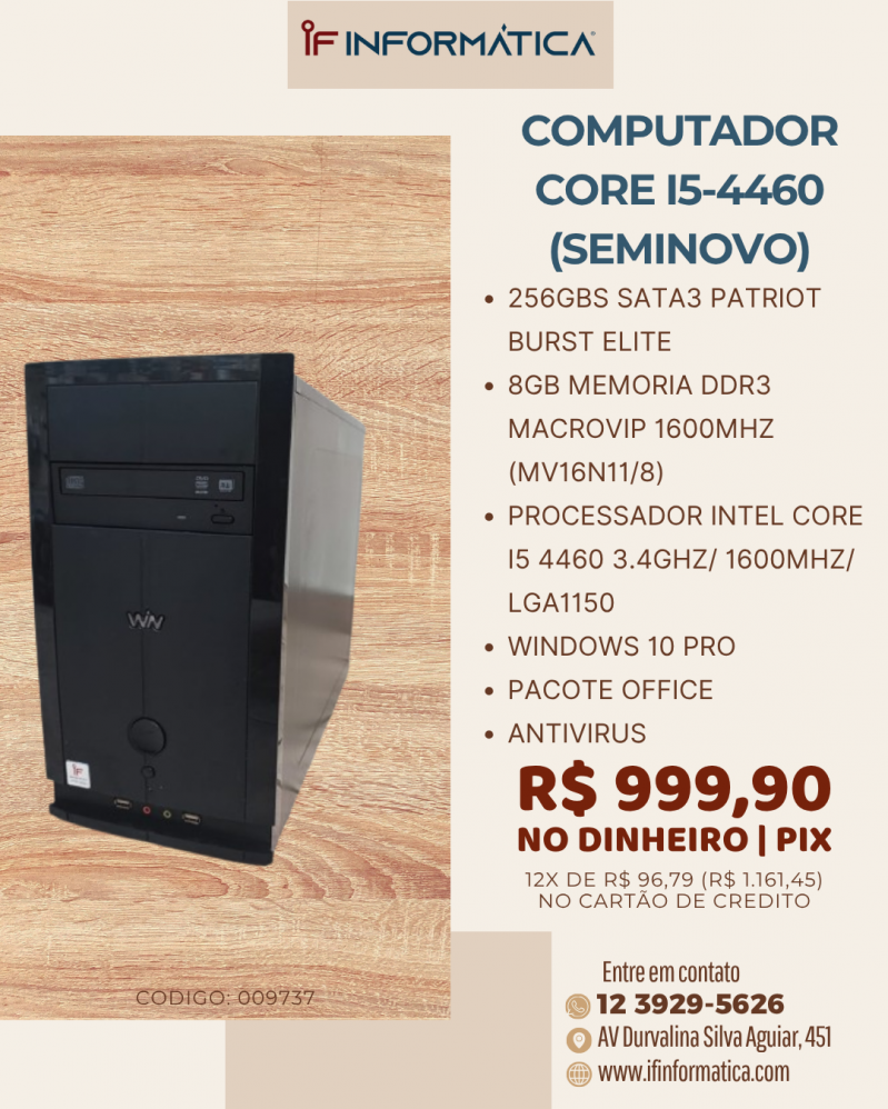 MICROCOMPUTADOR SEMINOVO INTEL CORE I5 4460 3.4GHZ/8GB DDR3/256GB SSD