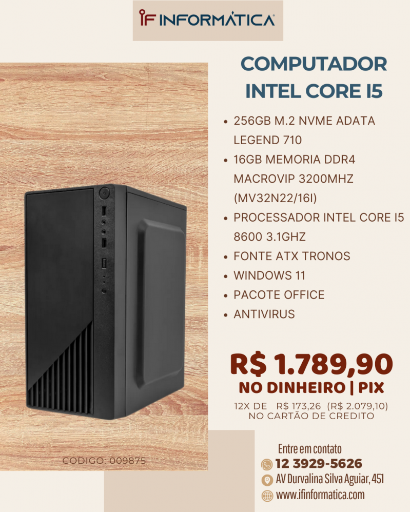 5x | R$ 357,98 | sem juros | R$ 1.789,90 |
